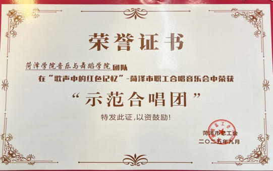 音乐会上,菏泽学院音乐与舞蹈学院党委书记李谨辰率学院59名职工代表组成合唱团,倾情演绎了经典红色曲目《祖国颂》。在学院专业教师的悉心指导和团队成员们的共同努力下,合唱团以饱满的热情、恢弘的气势和细腻的艺术处理,将作品中所蕴含的革命激情与民族精神展现得淋漓尽致,得到专家评委的高度认可,最终荣获“示范合唱团”荣誉称号。这一殊荣不仅是对该合唱团艺术水准和舞台表现力的充分肯定,也是对菏泽学院音乐与舞蹈学院专业实力和教职工良好精神风貌的集中展示。